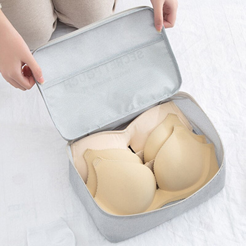 With a secure zipper or button closure, the bag ensures that your intimate garments remain private and discreet.